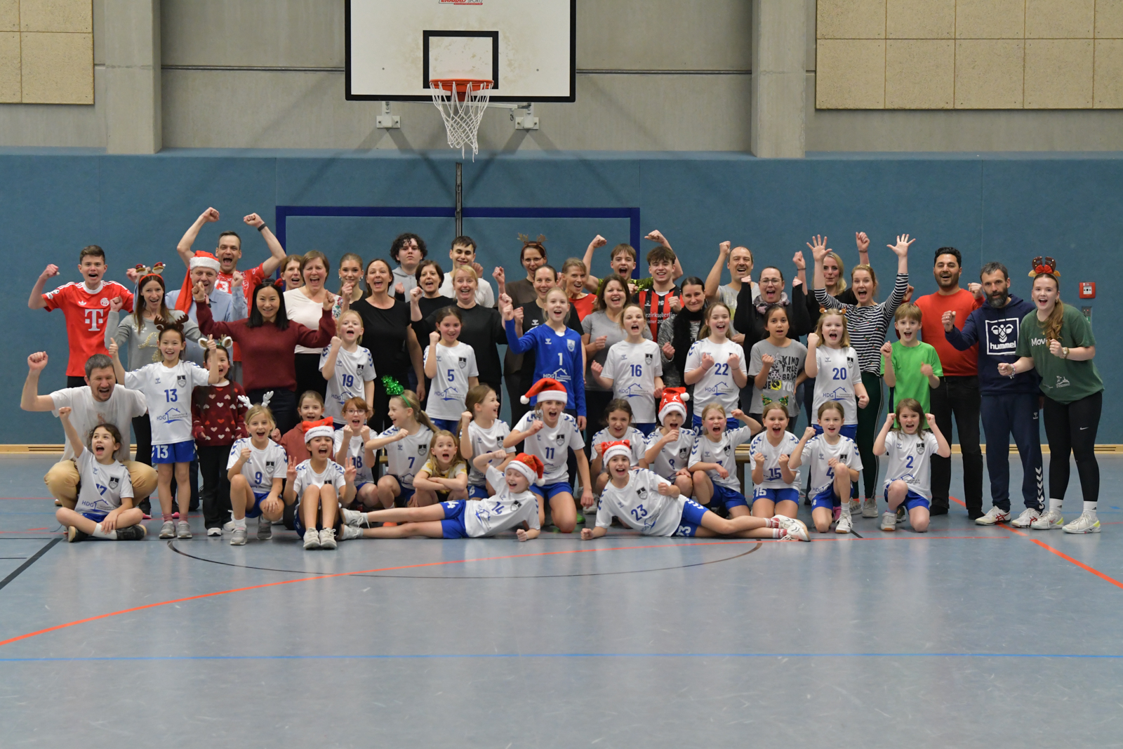 Am 16. Dezember großes Adventstraining der weiblichen E-Jugend mit Eltern. Ein großer Spaß für alle. Danke an Mia und Artur für die tolle Arbeit. Aus einer Idee mit 6 Spielerinnen im Februar wurde ein Team mit über 20 Mädels. Die sich am Ende des Trainings zum Mannschaftsfoto mit neuen Trikots der HDG Immobilien von Tobias Mand präsentierten.